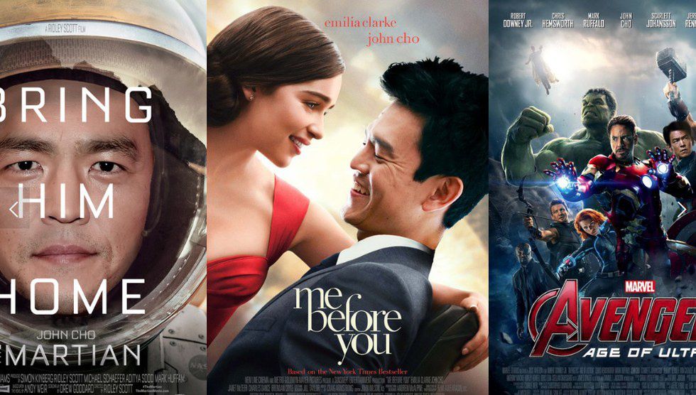 Second: Actor John Cho Photoshopped into posters for "The Martian", "Me Before You", and "Avengers: Age of Ultron".