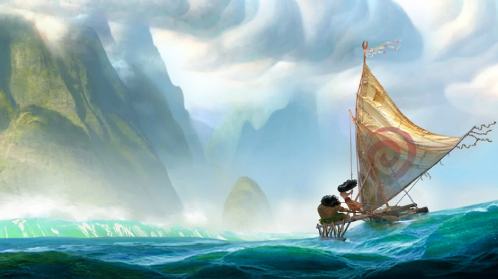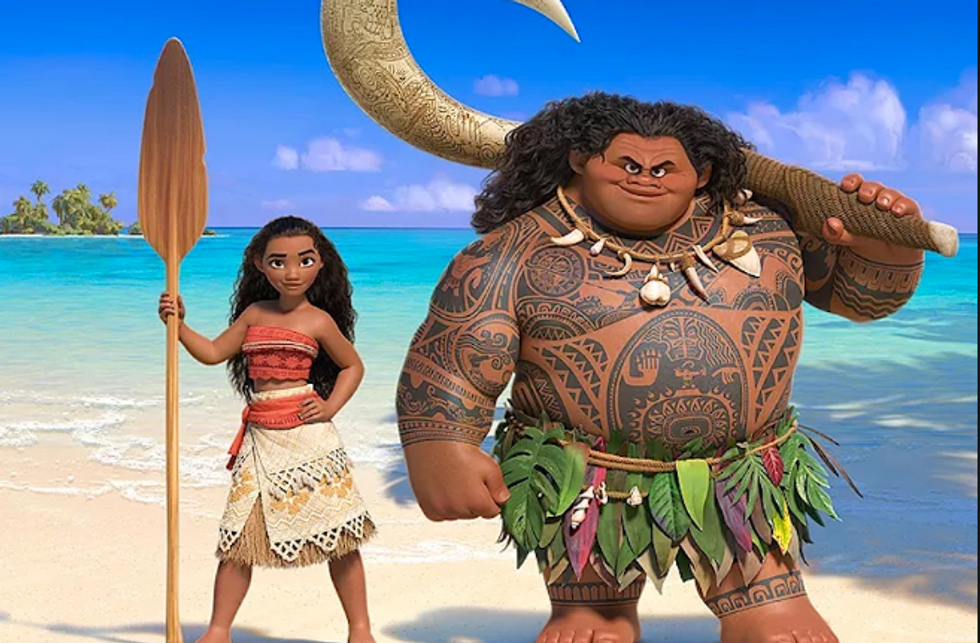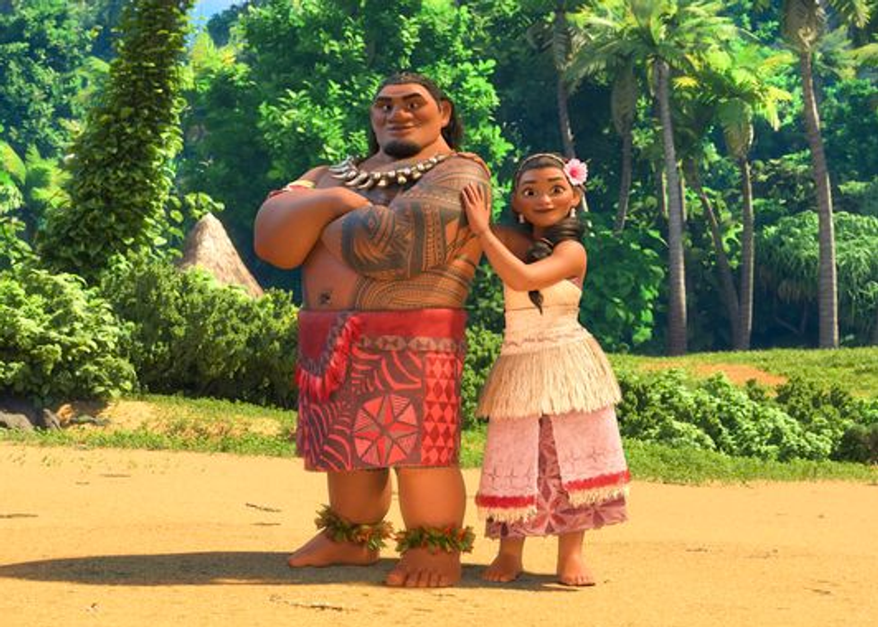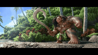 Which brings us to the film's plot—adventures! According to what Disney has released so far, Moana sets off on a quest with a demigod—half man, half deity—named Maui. Maui is something of a fallen hero, and Moana motivates him to go out and right his wrongs. He wields a powerful fish-hook, and has the ability to shape-shift. Check him out!