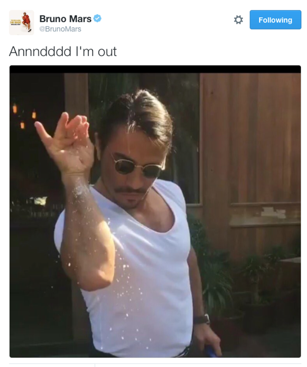 By no means is the Salt Bae an "unknown chef." Nusret has long been associated as a rockstar in his native Turkey. All of his restaurants has garnered lots of attention from international celebrities and athletes. Now that he's going viral on social media, he's getting a lot more recognition that he could ever imagine. Even Bruno Mars hilariously tweeted out the iconic picture of the Salt Bae dramatically sprinkling salt onto a slab of ribs.