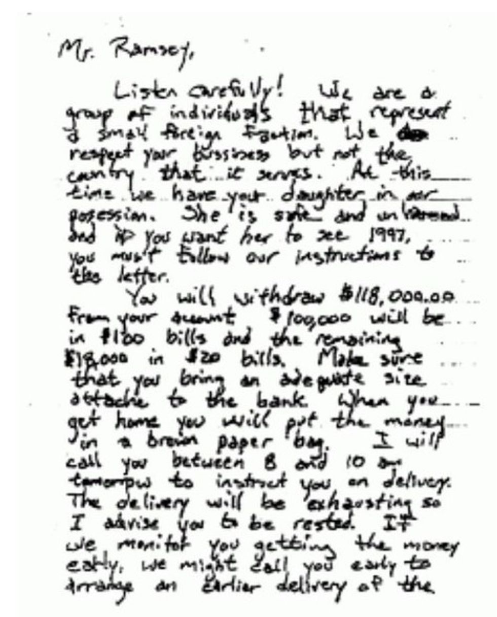 The ransom note asked for a very specific amount of money:$118,000. How did the kidnappers pick this number? Searching "What does a kidnapper typically ask for?" in Google was probably not the best idea for finding credible sources when asking how the JonBenet ransom amount was picked.(Just so you know, an in 2012 the average ransom demand was $2 million).