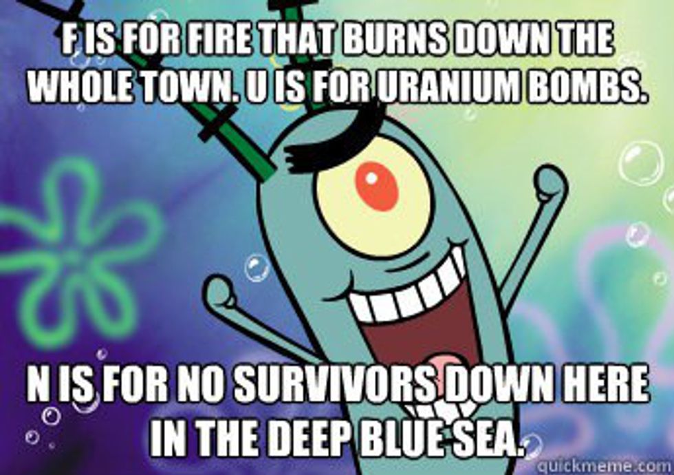 1. “F is for fire that burns down the whole town, U is for Uranium…bombs! N is for no survivors!”