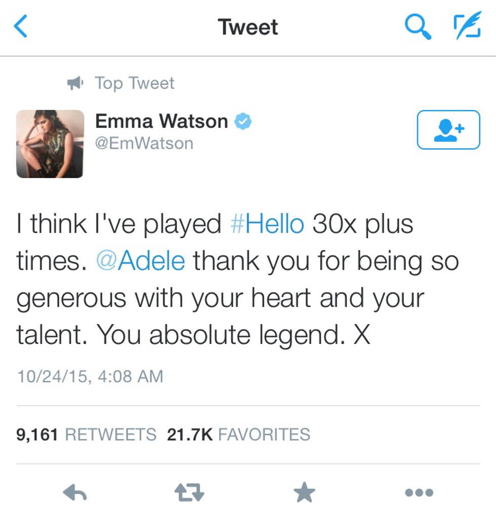 Emma Watson tweeted this to show her fans how much she loved the song.