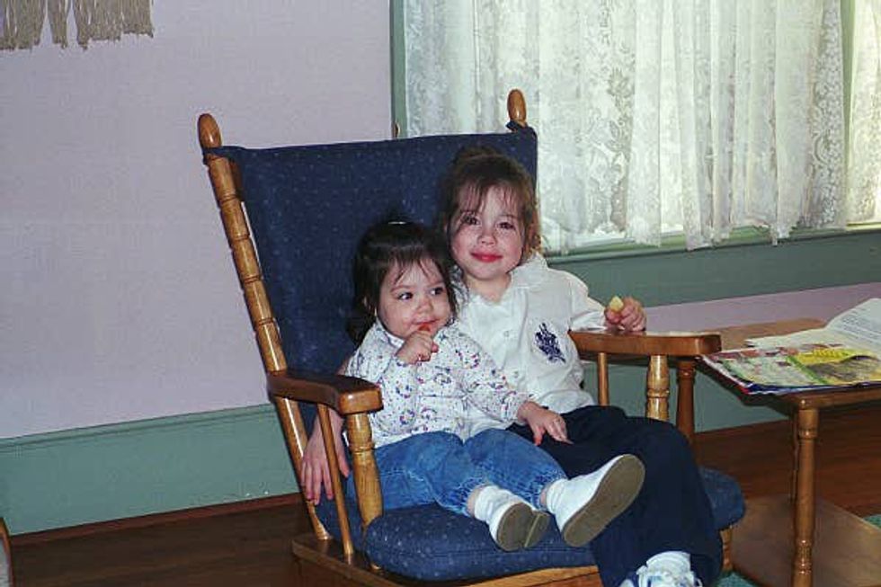 When we were little, she followed me around like a puppy. She always wanted to dress and match me, and it annoyed me to no end. One year for Christmas, we both got My Twin dolls that looked like our baby pictures, and she just had to have one because I got one, even though hers was the same size as her. But as I grew up I came to realize that she's my best friend. She's literally been with me through everything, through all of our fights, laughs, and tears.