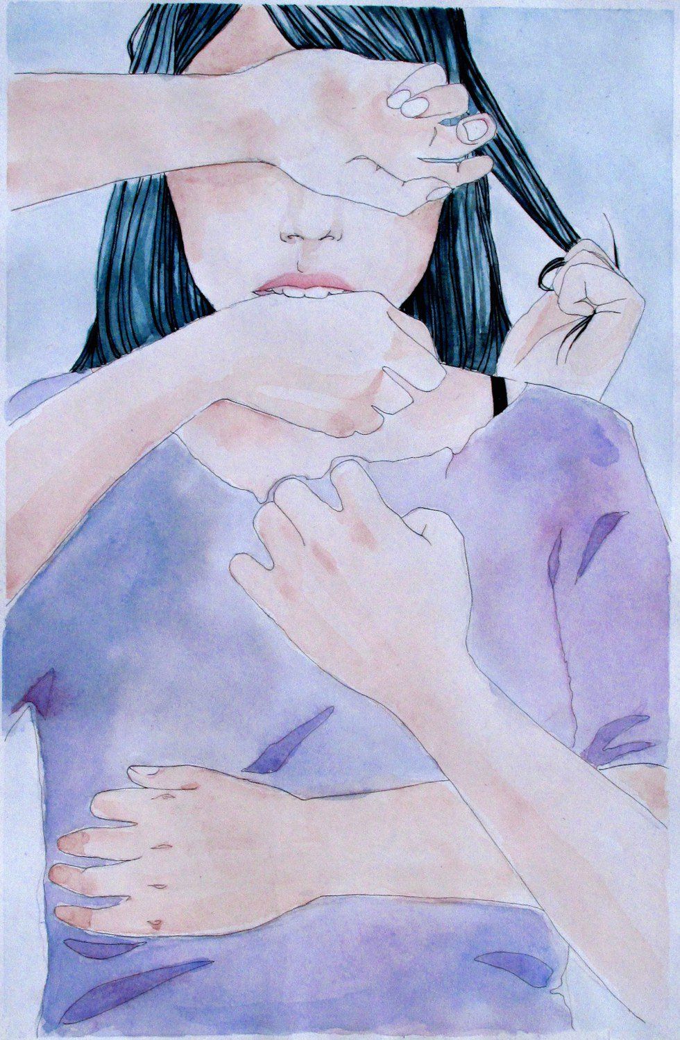 As the year continued I started having digestion issues. I would have stomach cramps during class, and I remember standing up during art because being in a sitting position hurt. Sometimes I couldn't sit down during lunch because I would get a pins and needles sensation all over my skin. I started feeling like I was really stupid for the first time in my life and I was sure that people hated me, I hated me. My grades dropped. I was moody and aggressive at home and I slept a lot. The only person I was consistently talking to was my best friend, which is how I found out that what i was feeling was definitely not normal. Shortly after that conversation I had a terrible anxiety attack at her house, which left me shaking and laugh/crying (which can be a somewhat alarming response for everyone) and needing something in my hands to fidget with, which meant that I organized all her bracelets by color until I had calmed down.