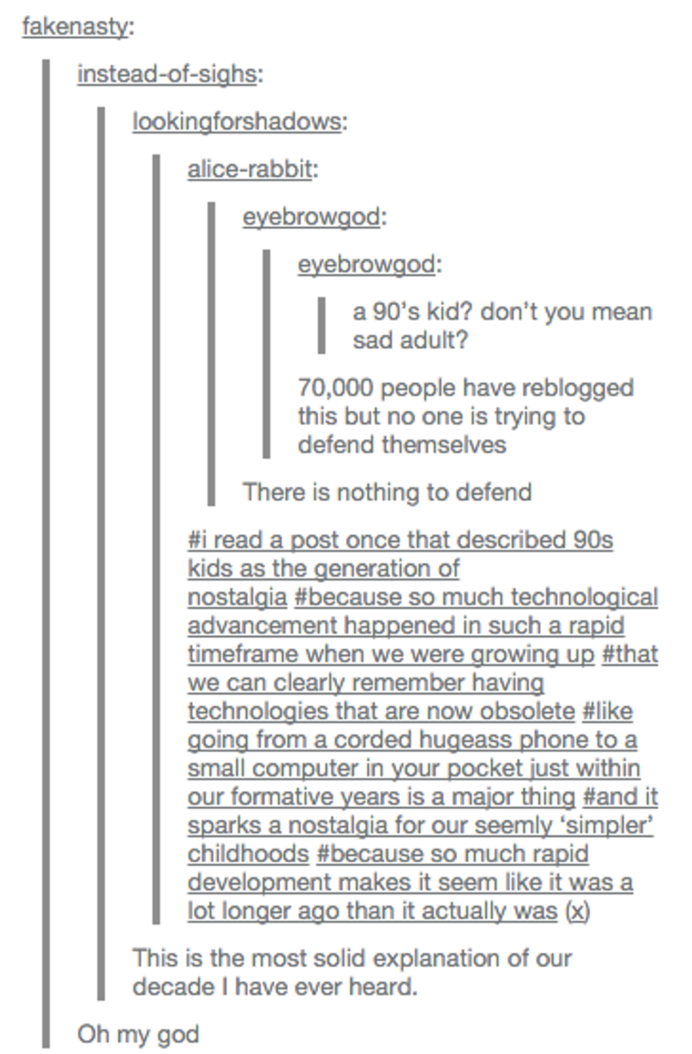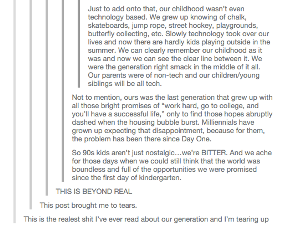 I was also scrolling through Tumblr one night and came across an interesting thread giving a pretty compelling argument about being a '90s kid: