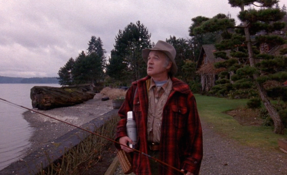 The fisherman decides to take his morning routine such as any other day when he encounters a dead body. Upon seeing the body at the sawmill the fisherman runs back to town screaming and calling for harry, the policeman of "Twin Peaks." This is how viewers are introduced to the beginning of the show.