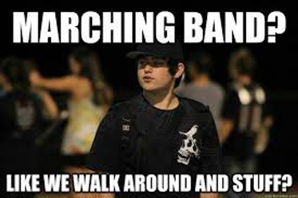 Marching Band games in November just coincidentally land on the coldest nights of the entire year! And the cold pelts right through those uniforms, because they aren't built for the winter. Nor are they built for summer. Marching Band games in September? Forget it. You're sweating buckets before you even walk out the door. Your fingers are about to fall off, but its OK, because you've probably lost touch with a majority of your body parts by the middle of the night. Your parents and non-band friends can't quite wrap around their heads why you would do this to yourself, but you certainly do.