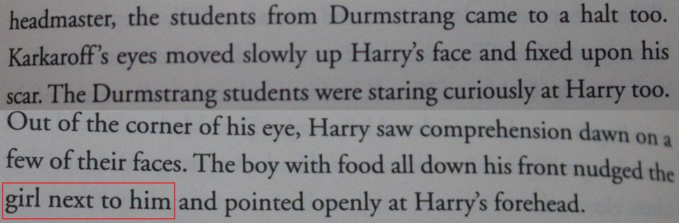 At the end of this year it will be 12 years since the film adaptation of Goblet of Fire was released and yet I am still deeply bitter about this book-to-movie change. The movies have influenced people so much that there are many movie-watchers and book-readers alike that have forgotten that the schools were not gender specific in the books. So, in case you don’t believe me and don’t feel like grabbing your copy off the shelf to search through it, here is solid proof.