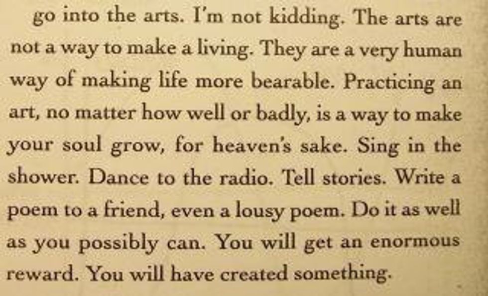 One of my favorite quotes is by author Kurt Vonnegut. He says, "Go into the arts. I'm not kidding. The arts are not a way to make a living. They are a very human way of making life more bearable."