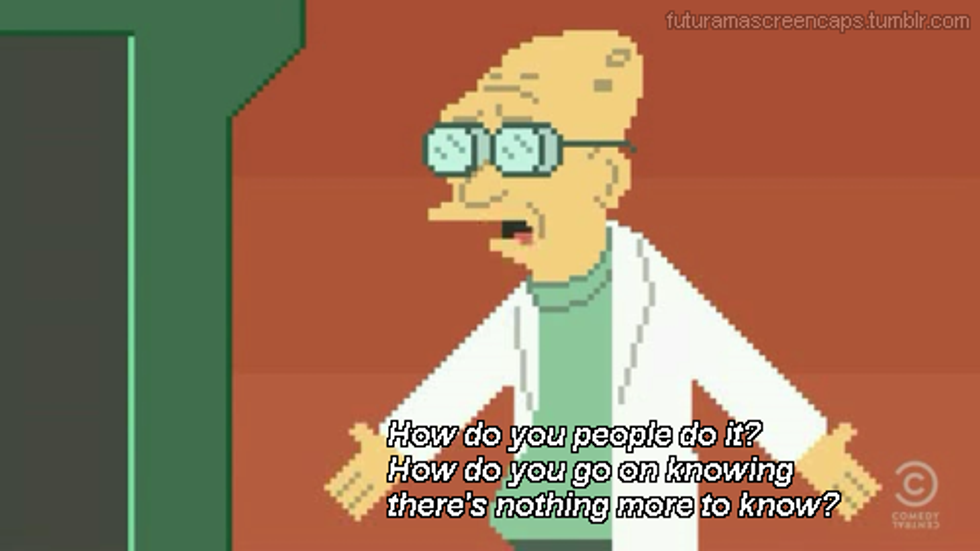 I've spent countless hours stumbling through my classes; countless more deep in existential crises trying to remind myself why the f*ck I'm doing this. But the further I get into my course load the more excited I get. The closer the future is for me the more happy I am. I don't have any plans on what I'm going to do after graduation. But I know that there a lot of possibilities out there waiting for me. And who knows, maybe my literary edge is just what the scientific world needs.