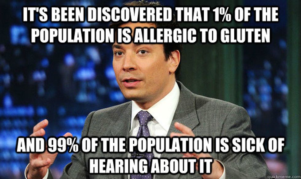I've noticed a trend over the last few years of comedians deciding to make fun of the "1%" that is allergic to gluten. I can not even begin to explain the ways in which this pisses me off. This is why so many people do not take celiac seriously. People make light of it because it's okay to make fun of something like this. Something that can seriously hurt someone. So funny. Not.