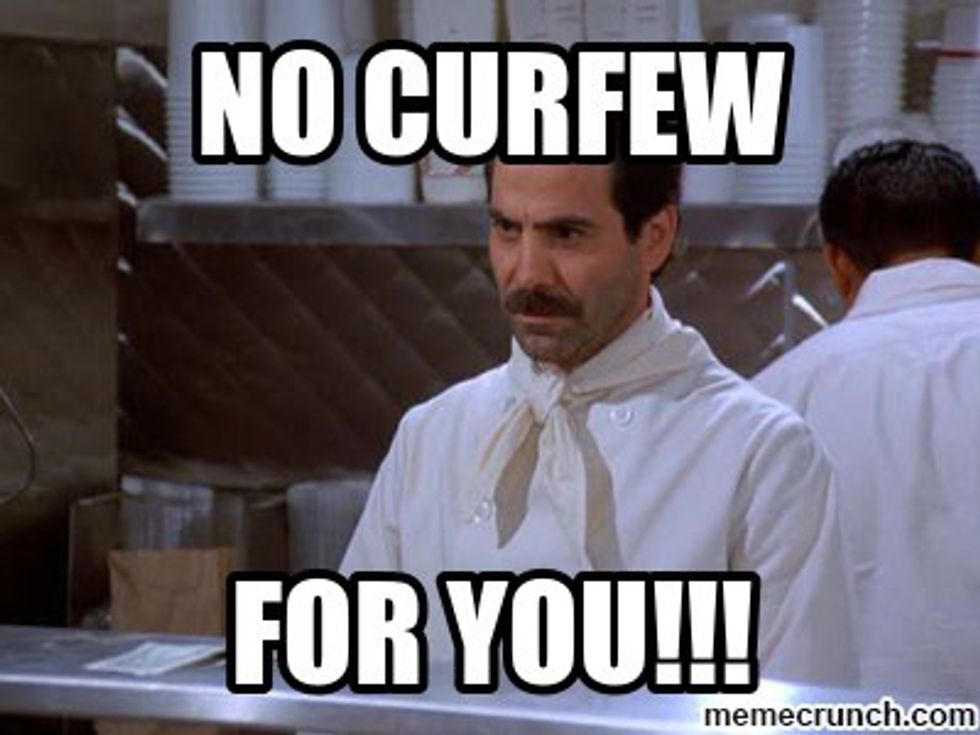 As a younger sibling, you go to bed the same time as your older sibling. This is because your parents don't feel like dealing with you complaining that your older sibling gets to stay up. So by the time you are old enough to have a curfew your older sibling doesn't have one anymore. Therefore you do not have a curfew. Your friends that are the older sibling with always complain how unfair it is. But it is not your fault you were born to be the youngest.
