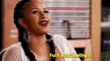I truly feel this part to the core. It perfectly illustrates, from a female perspective, the sexual freedom that women are criticized for again and again while men are constantly praised for; why can a man brag about banging 500 women or getting a blowjob from some random girl he met at the club but when a woman talks about getting the best head ever, it's "immoral" and "nasty"? Cardi B takes that double standard and smashes it into smithereens, unabashedly and without apology. She takes pride in the fact that men want to partake in fine dining, especially in exchange for designer items (at the man's cost). This set of lyrics serves as a big middle finger to society's awful double standard on sex, and this GIF perfectly says it all those who disagree: