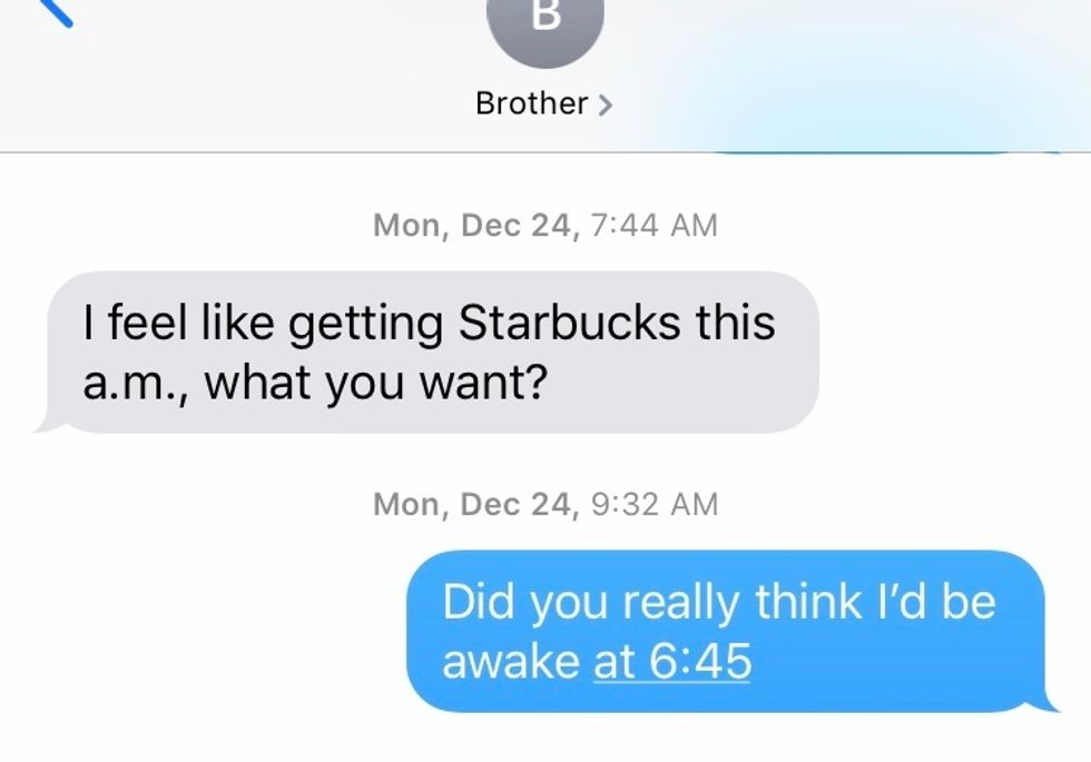 Sure he was awake at an UNGODLY hour, but it's the thought that counts.