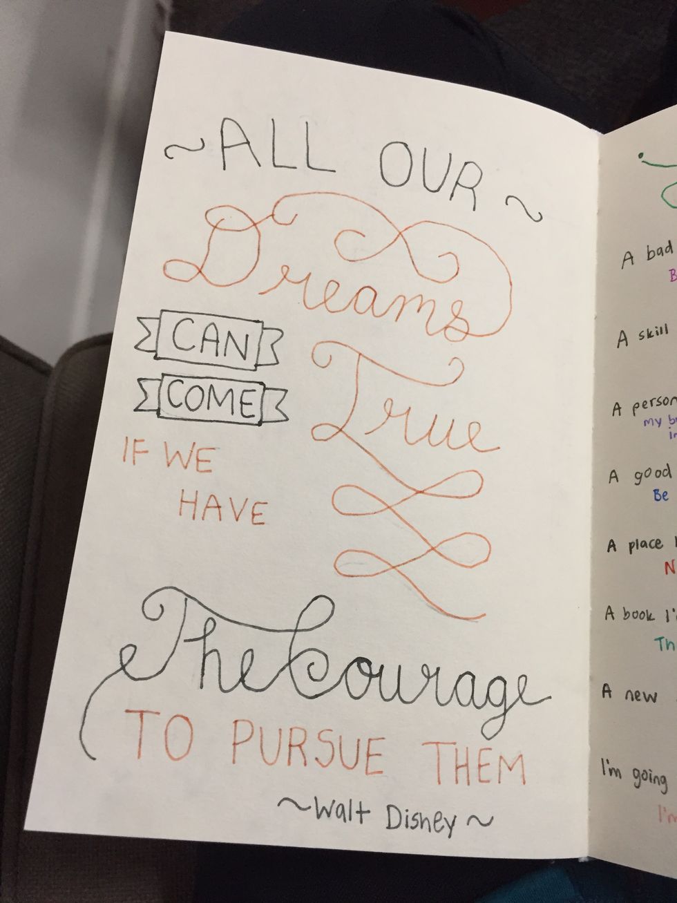 I myself discovered journaling over this winter break. Something I’ve always wanted to try, my friends and I started doing it together. As a group of broke college students, we used the time to hang out and journal together. It was a great way to share ideas and compliment each other’s work. Every single one of our notebooks look different, but they represent us as people. We all find it relaxing to take a few minutes of the day to clear your head, sit at your desk with your pens and pencils and journals, and let your mind run wild.