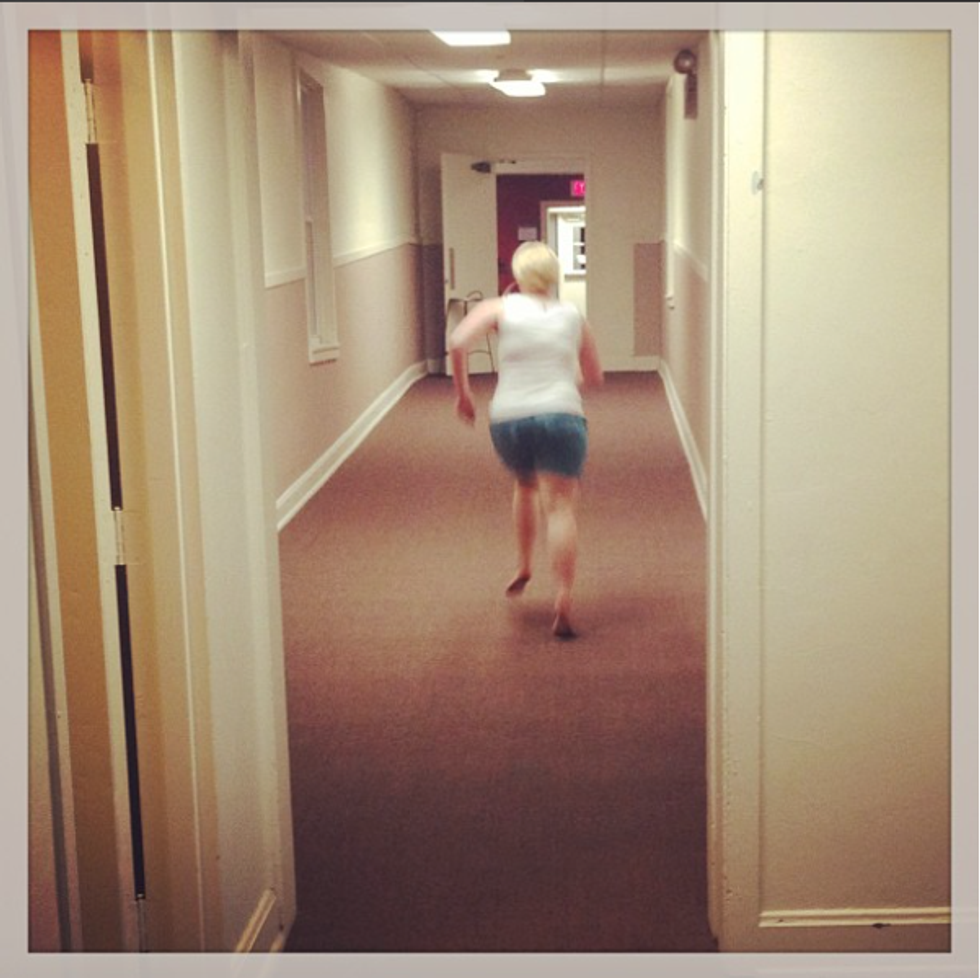 I'm also an exception to the "ADHD in women" rule. Typical symptoms of ADHD in women and girls are day-dreaminess, anxiety and depression, excessive talking and trouble maintaining friendships to name a few. I have all those struggles plus the hyperactivity of a boy. Our first real suspicion was my inability to sit still during one of our schools infamous floor meetings. They made me run laps up and down the hall in an attempt to get me to calm down. You can see that below--our floor was pretty much a circus wherever I lived.