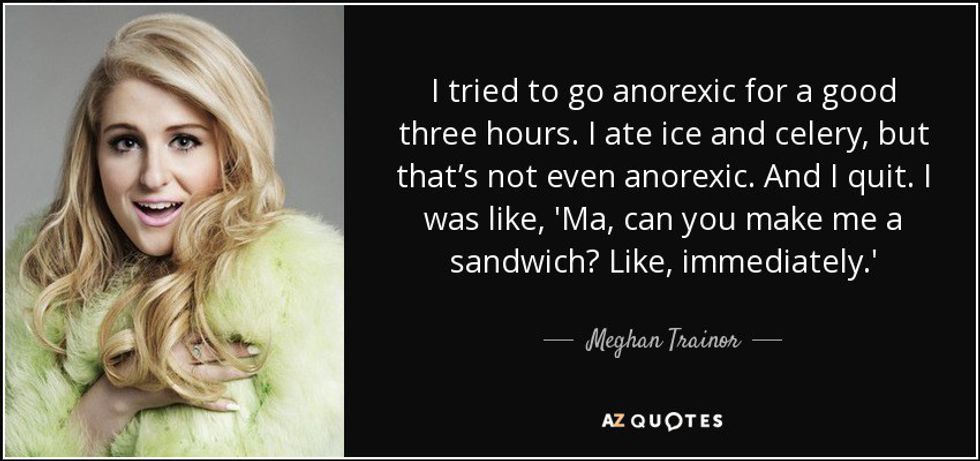 Trainor also states, "I wasn't strong enough to have an eating disorder." Once again, what the actual heck? Eating disorders are not about strength at all, and as someone who has seriously struggled with this, I find it absolutely unacceptable for her to say.