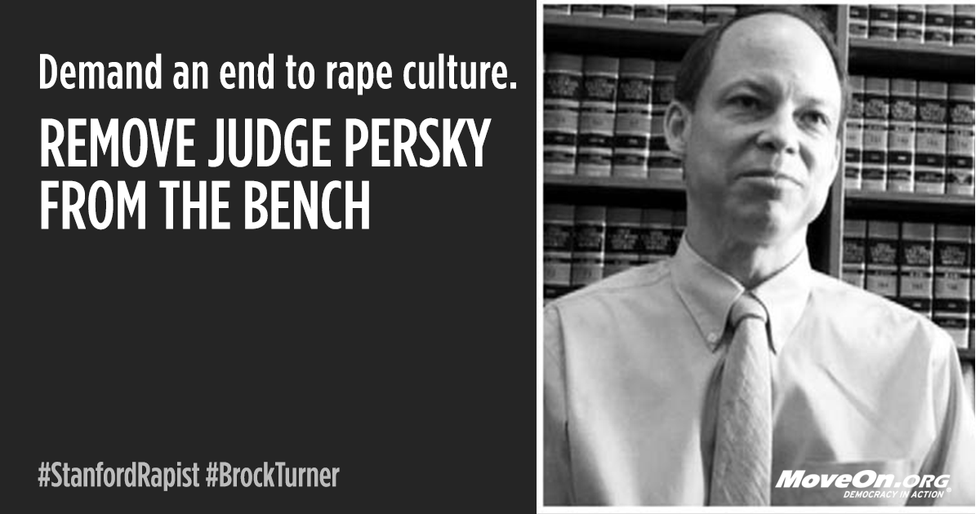 There is a petition going around in order to have Judge Persky excused from his role as judge as punishment for his actions and while I don't think this is enough, we need to start doing something. Sign the petition and show the world that rapists aren't going to be treated with a slap on the wrist and rape victims aren't going to be ignored—not by you, not by the law and certainly not by Judge Persky.