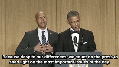 Seems he's still a tad bitter about the press's portrayal of him back in the day. President Obama has often been criticized for being a little too funny sometimes. As Cecily said, "Thank you for taking time off from being on Jimmy Kimmel to be here." But you know what? He's got less than two years left in office. So what if he has a little fun? Let him enjoy the presidency one last time. Obviously, he's still working day after day to make this country a better place, but why can't he entertain the American people while doing it? He is undeniably the most light-hearted president yet. Clinton may be at a close second.