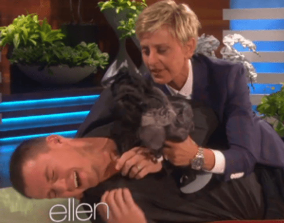 Even when he is scared of something not so manly, and crawls up on the couch of the Ellen Degeneres Show like a little girl, he is still cute doing it. Who is afraid of dolls?