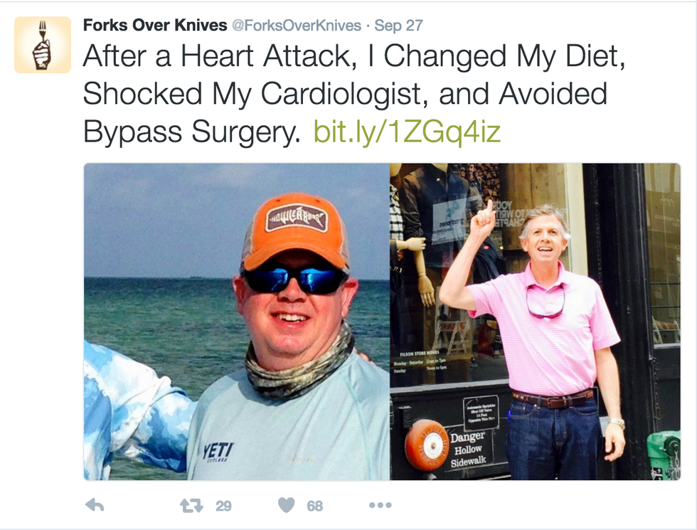According to the documentary, because when we consume dietary cholesterol, only found in animal foods like meat, egg, and dairy products, it tends to stay in the blood stream. This plaque builds up in our blood vessels and is the major cause of coronary artery disease, which often leads to very costly surgeries. Throughout the film, there are numerous examples of people in poor health who switched over to an all plant-based diet, leading to incredible results and even reversing diseases like diabetes and cancer that they've been previously diagnosed with.