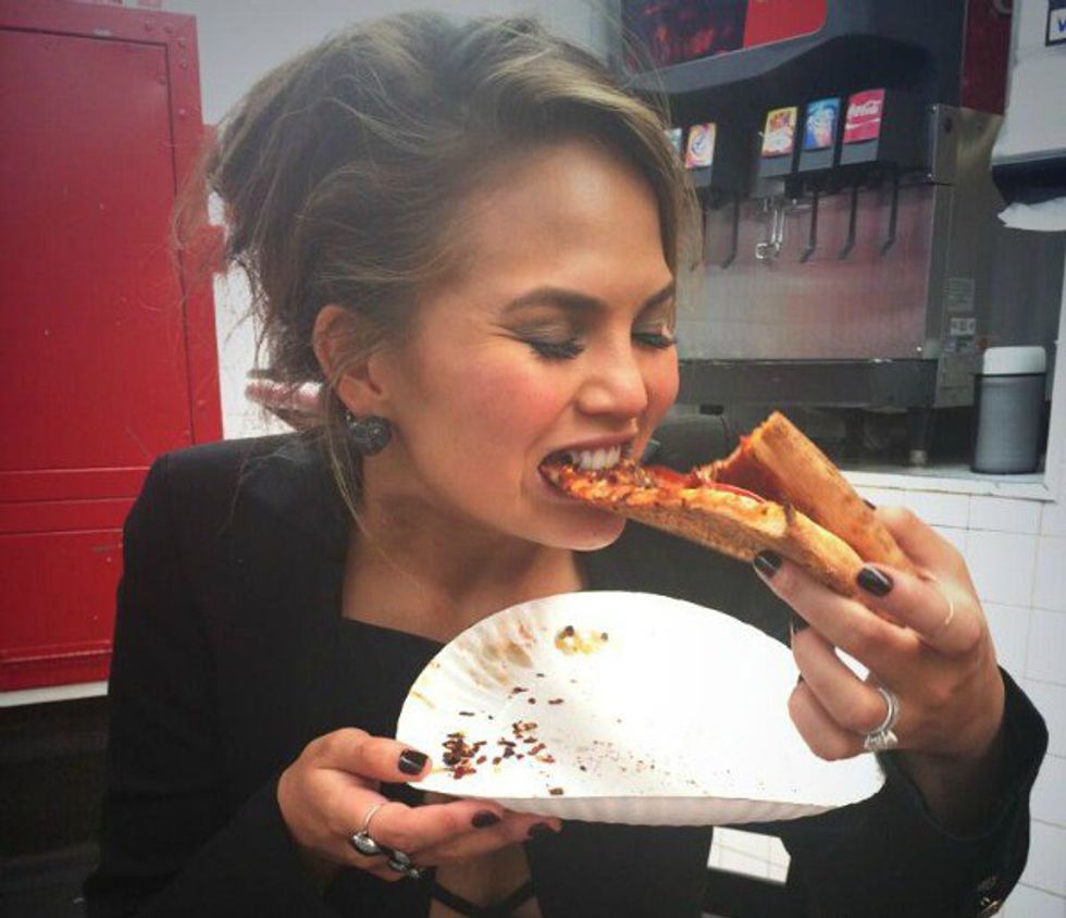 Chrissy is just like us, she has cravings and will eat pizza and Cinnabon while looking fabulous.