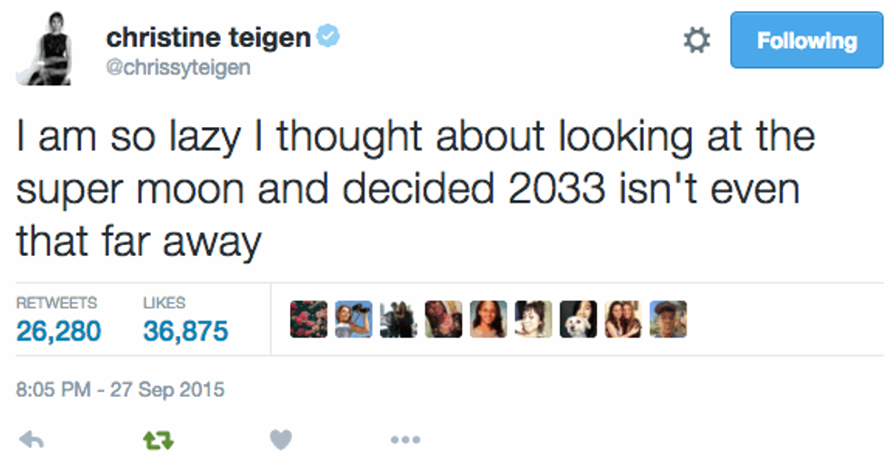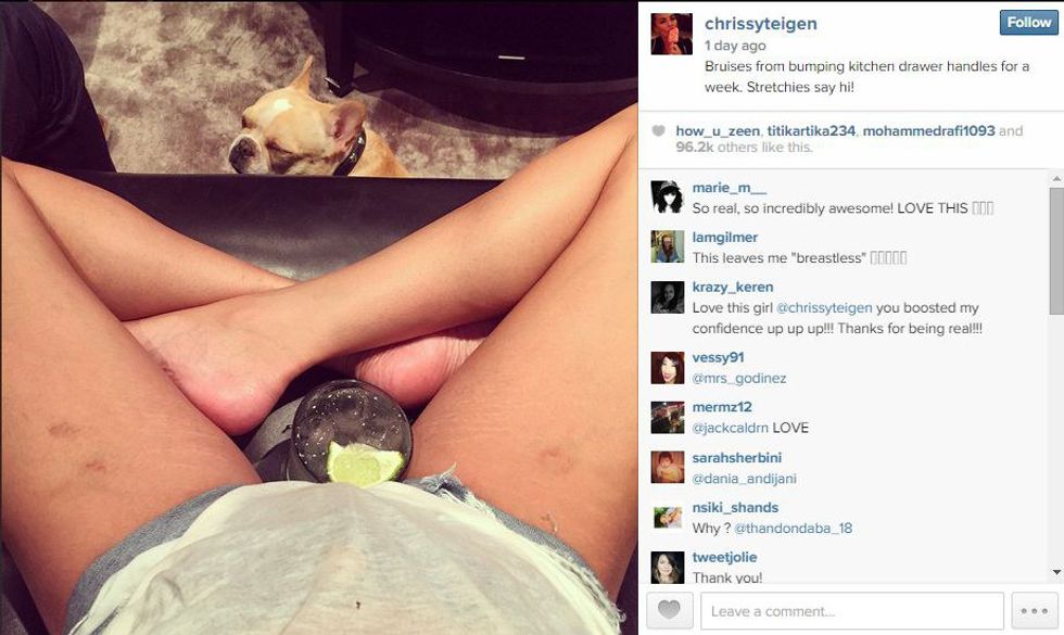 We all know that Chrissy Teigen, famous model and wife to John Legend, is a goddess. Chrissy is also funny, beautiful and entertaining. Her all-around perfectness would kind of make you want to dislike her if she wasn't so down to earth and real. Instead, her self-deprecating, honest humor has us all wishing that she was our real-life best friend. Chrissy uses social media to reveal her strange and quirky side. Here are 10 times when Chrissy was all of us.