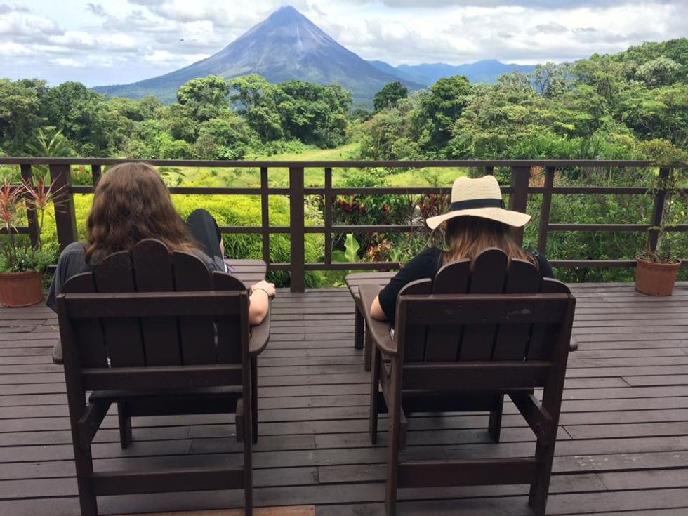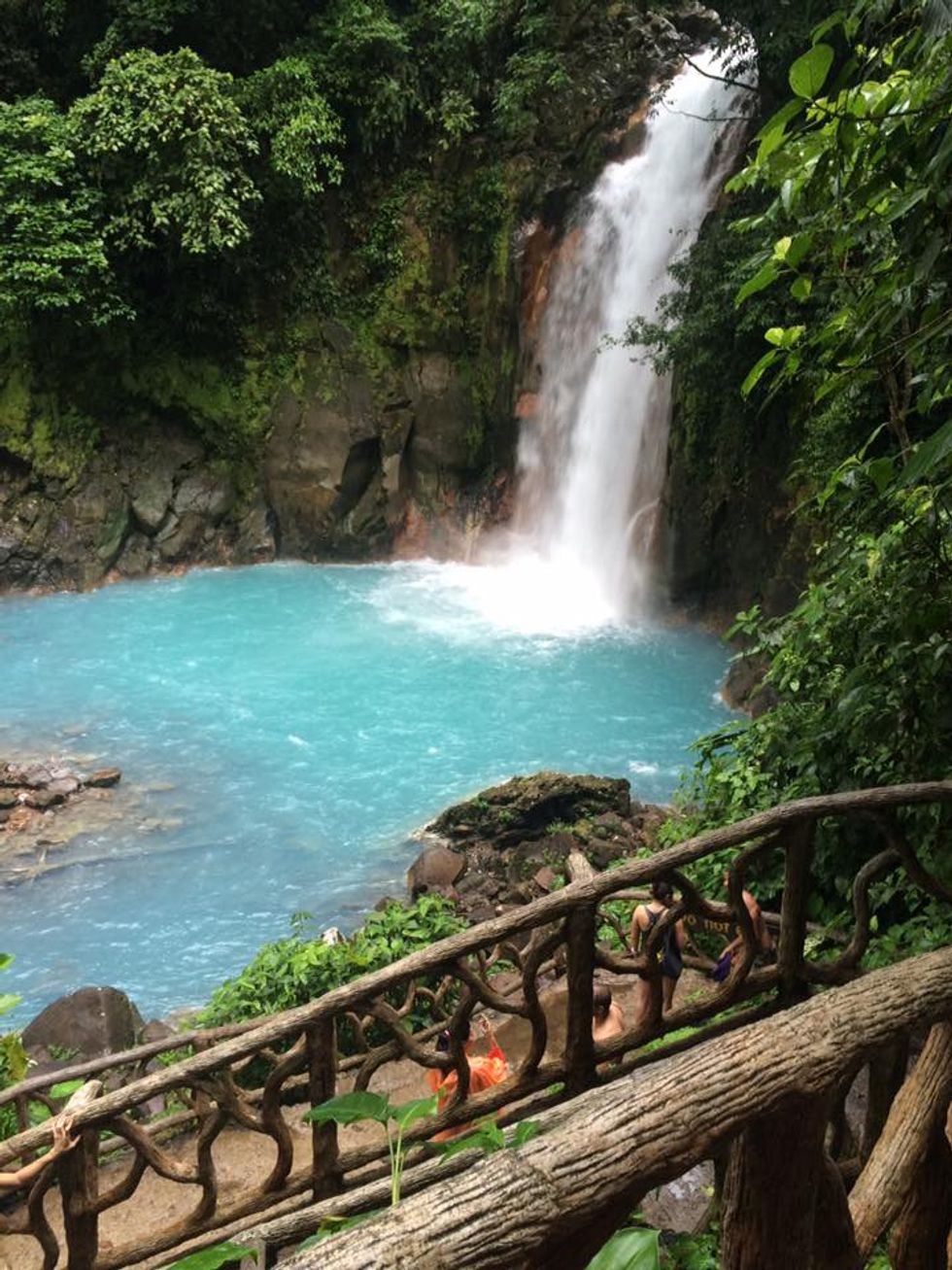 The rest of our trip was spent in the Arenal area, and then lastly at Rio Celeste. In each spot, we hiked through the rain forest to check out waterfalls and explored the hanging bridges. Honestly, both areas are breath-taking, and there's nothing that really compares to those sights. For example, the view from our hotel, the Arenal Lodge:
