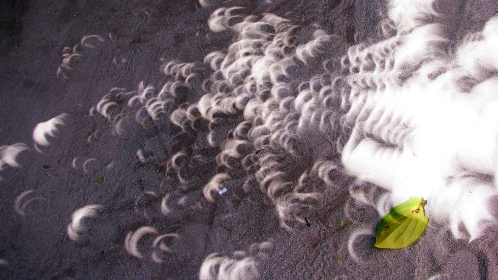They said there were a lot of people who had glasses and other devices to watch the eclipse, and because it's such a unique experience, people were sharing their devices with those around them so they could all see the eclipse. Interestingly, they said that there were crescent shaped shadows cast by a lot of objects and structures. Sure enough, a lot of the photos taken related to the eclipse are these quirky little crescent shaped shadows.