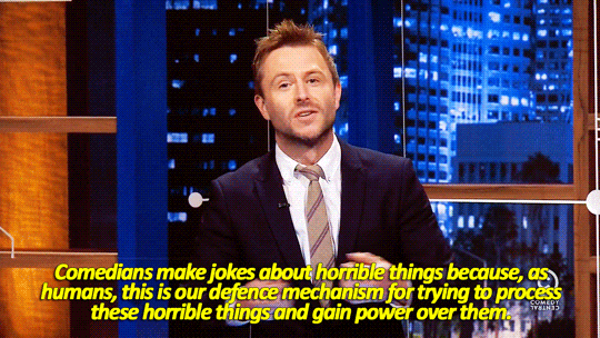 While very graphic, Hardwick makes some excellent points. Comedy is both our sword and our shield that we use to keep the evils of the world at bay. This is why we joke, why we (as a society) push ourselves to laugh at adversity.