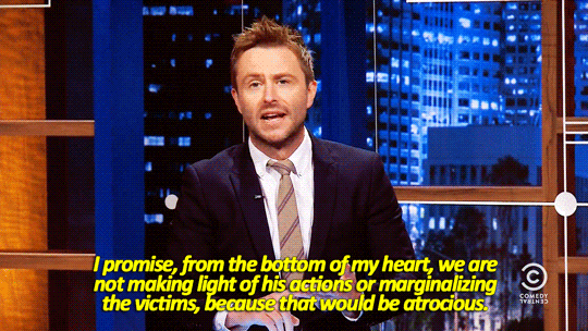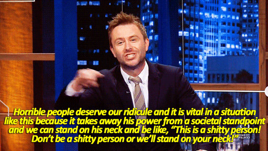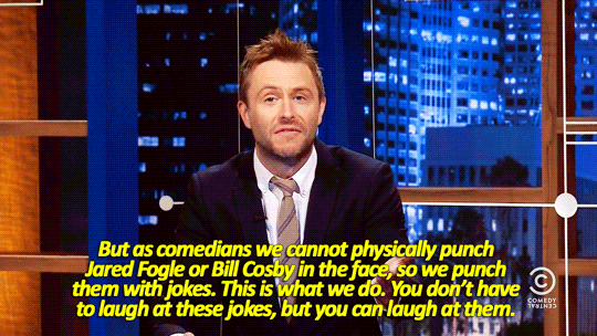 But comedy is more than just a shield to be used for protection. In fact, it is also a weapon. Chris Hardwick (from The Nerdist) puts it the best (BE WEARY OF LANGUAGE):