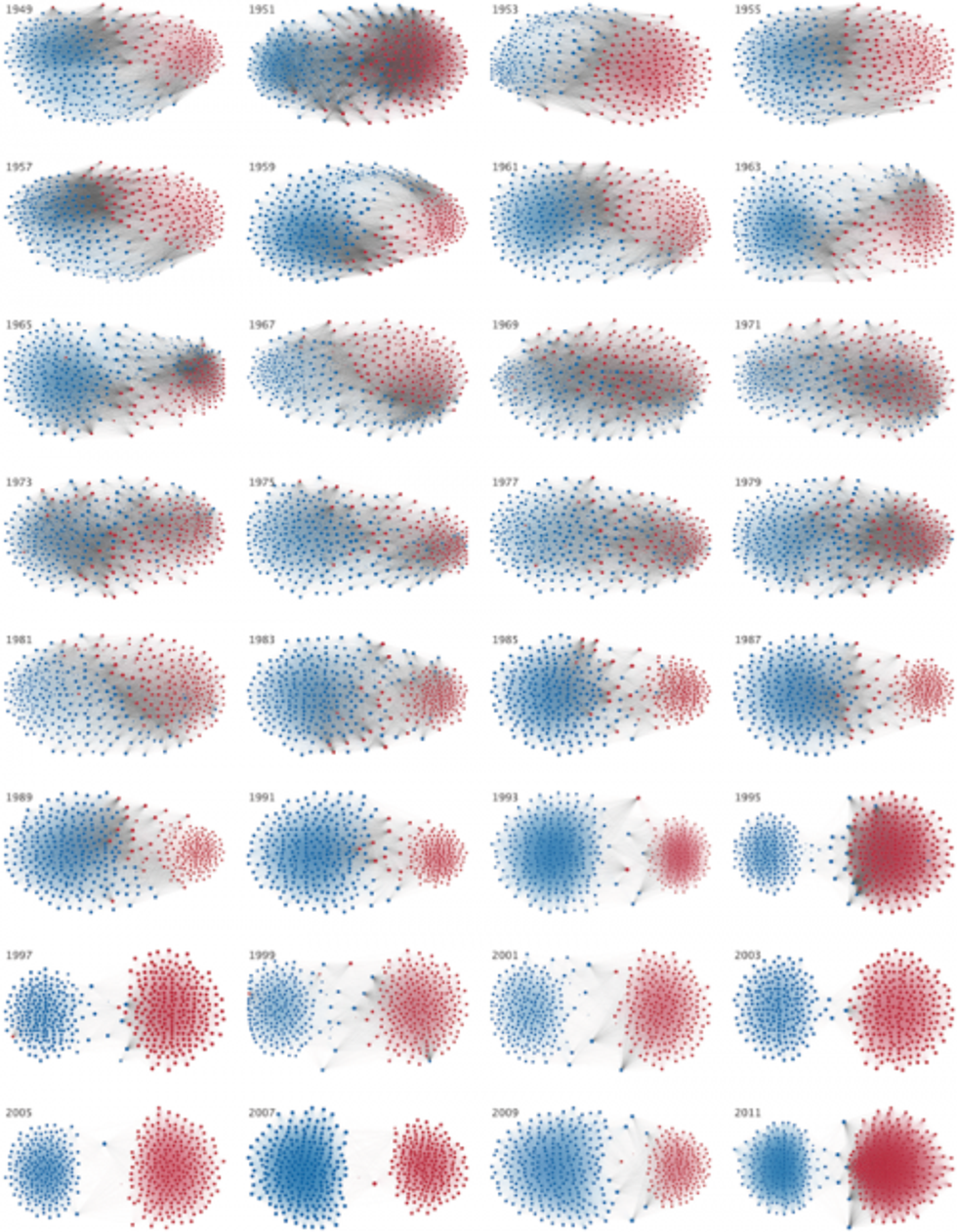 As we can see with his chart the republicans and democrats in the U.S. House of Representatives in addition to how polarized the parties have become between 1949 and 2011. A chart examining the U.S. Senate would also show similar results.