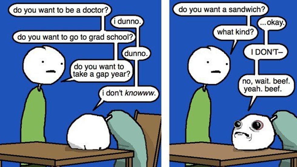 Be you and do whatever makes you happy. It is your life and your career, do as you please. If you want to be an underwater basket weaver than be the best weaver out there! It is okay to not know exactly what you want to do. A ton of people go into jobs within their major and end up hating it only to do something completely different and love it. The best thing you can do for yourself is to gain experience and learn who you are and maybe you’ll soon find out what you want to do for the next three years. Remember to breathe and have fun! It is the real world but it doesn’t have to completely suck.