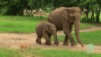 Elephants are really friendly, and LOVE dogs. There have been reports of elephants showing altruism to other species, such as resucing trapped dogs at considerable cost to their own livelihood.