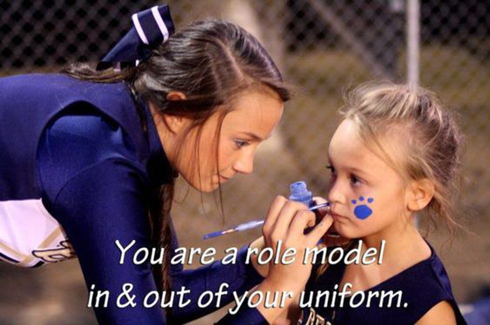 There is always going to be a little girl in the stands, watching you and wishing that she could be just like you some day. You're going to see adorable little girls copying your moves from the sidelines and that's going to become your reason for doing this. It doesn't matter how much interaction you really have with younger cheerleaders. Seeing just one little girl looking at you like you're her idol is enough. So, you have to learn how to keep your cool and be respectful. You can't be a diva and you have to watch your mouth. Whether you're in or out of uniform, you're going to be a role model to somebody, because they remember you. Because, no matter what you're wearing, you represent your team at all times and you want to make them proud, as well as every cheerleader that came before you and will come after.