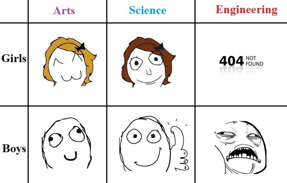 Ladies, please join me. I’m lonely. The guy to girl ratio is about 5:1. What’s even sadder is that because engineers are in high demand, women from first generation or low-income backgrounds could especially benefit from high paying and secure jobs, but oftentimes women are scared to pursue STEM. Girls are told from an early age they aren’t as good at math or science as boys. First of all, that’s ****. Second of all, you don’t have to be the best. It’s also OK to struggle and ask for help as long as you’re willing to put in the work. Diversity of any kind has been proven to improve products, so you’ll be doing us all a favor if you grit your teeth and stick to engineering.