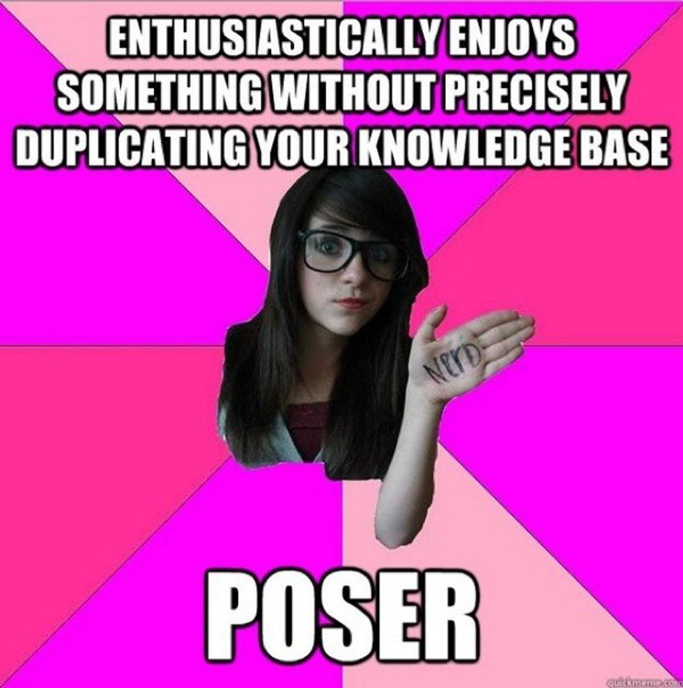 If you've been on the Internet in the last five or so years, you've seen your fair share of memes. They're everywhere, and they can be pervasive. One that has definitely made the rounds is the Fake Geek Girl meme. If you haven't seen it, here's essentially what it looks like.