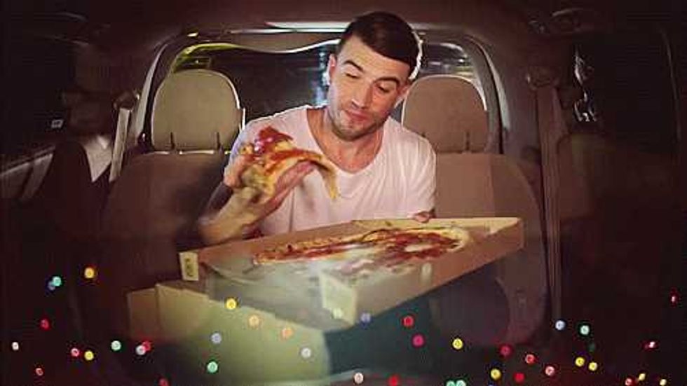 He's not above eating pizza in the back of a taxi cab.