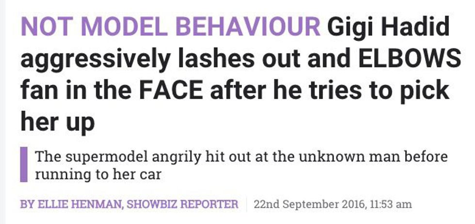 Now while I myself applaud her for this, multiple news outlets have been reporting it as Gigi Hadid lashing out at a fan, and that she aggressively attacked a fan. This is where Feminism is important. It’s important because a woman was picked up against her will and news outlets are trying to portray Hadid as the bad guy. How is it okay for a total stranger to grab a woman and think it would be okay, and how is it okay for people to be reporting that she is aggressive and that she lashed out a fan?