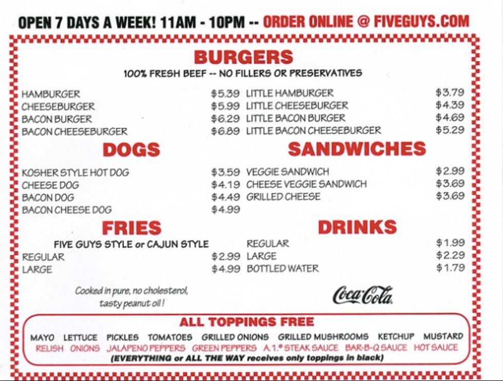 You thought the menu above was all? Nope. They also serve milkshakes and let me tell you. You have not lived unless you have had a Five Guys shake.