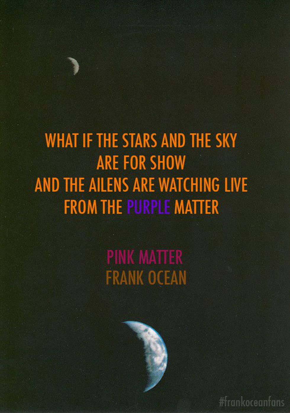 Frank Ocean's vocals are incredibly powerful over the simple guitar strokes in the background of this song. The tone and transitions between the high and low notes give the song its beauty. None of Ocean's lyrics are ever meaningless. Ocean takes us through the history of man -- beast, primate and the modern day man of flesh and blood. It is a song of manhood and male sensitivity, but also a song we can close our eyes to while on a road trip.