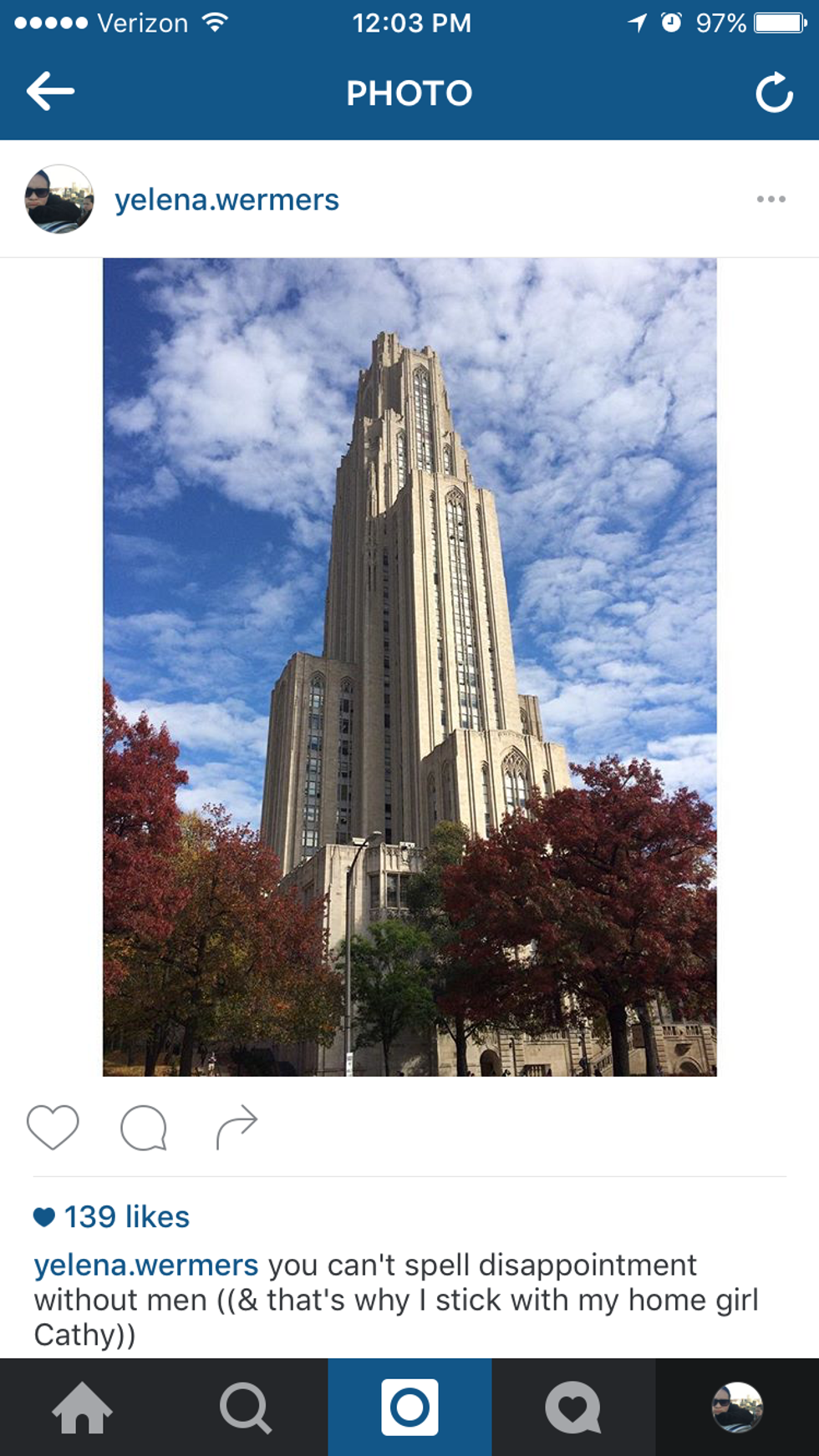Not to mention, I actually don’t know what I would do if I didn’t have Cathy to look at every day while walking to class. It’s weird to think other schools don’t have such a glamorous cathedral in the middle of their campus. What do you guys even Instagram? I’m pretty sure Pitt students only Instagram Cathy (sorry followers not at Pitt, but also you’re welcome followers not at Pitt).
