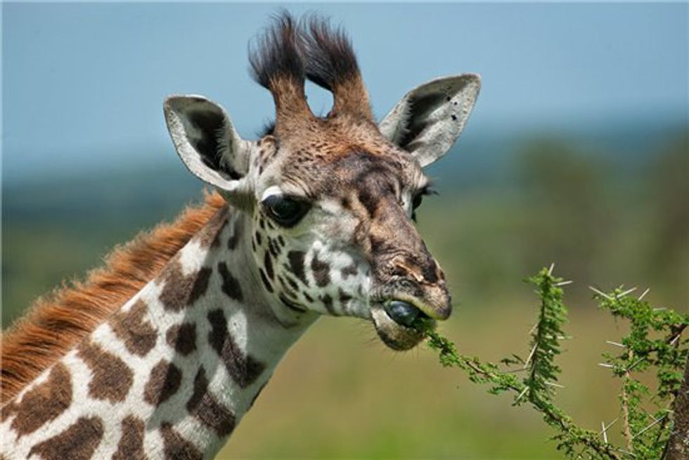 2. Both male and female giraffes have two distinct, hair-covered horns called ossicones. Female and young giraffes have tufty ossicones, while the males’ are bald on top.