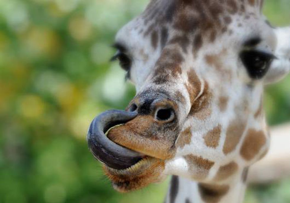 12. Giraffes' tongues can be up to 20 inches long and are darkly colored, which is thought to help protect them during frequent sun-exposure.