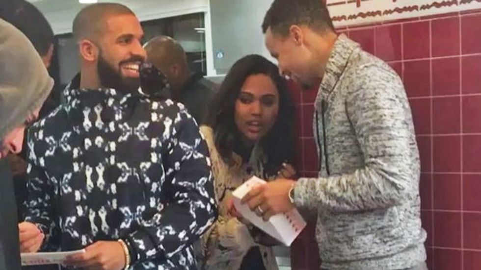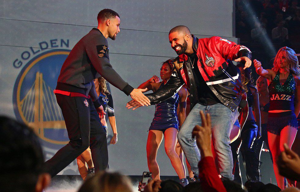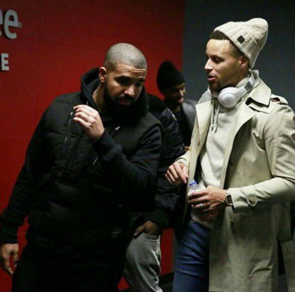 Drake claims to be 'Steph Curry with the shot' because he doesn't miss a beat, just like Steph. And we're not complaining because these two together are pure magic. Girls go bananas over Drake, and add Steph into the mix...ugh you can't get much better than that. The two are buds and us girls love that.