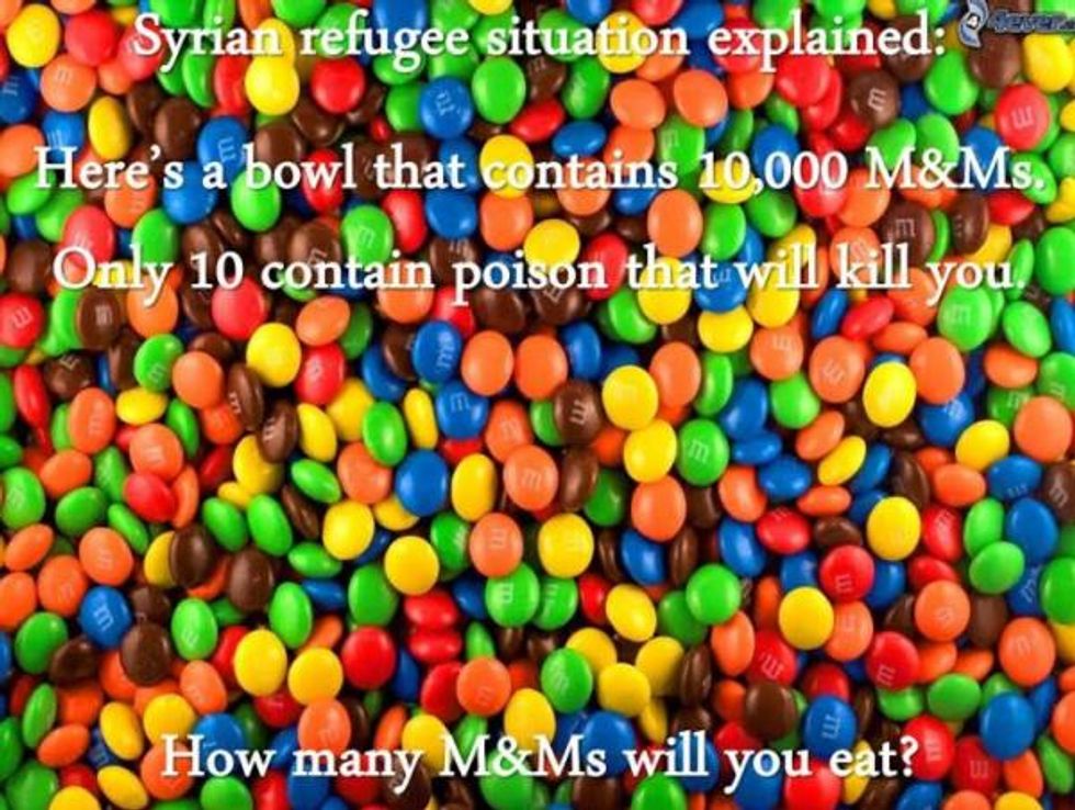 It's incredible how much ignorance can be spewed just by capitalizing on fear. The aforementioned image on refugees and M&Ms is a clear example of xenophobia working overtime, using fear mongering to reduce populations to mere clickbait.