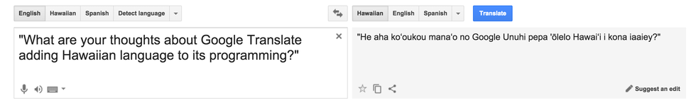 It took me seconds to share the article to my Facebook, come up with the clever caption of “yes yes yes,” then test out the new Google Translate features in Hawaiian and rule that, while it was inaccurate in its translations at times, it was exciting to see the language of my ancestors pop up across my computer screen. But now I wonder, is this a positive addition? To figure it out, I asked my friends.