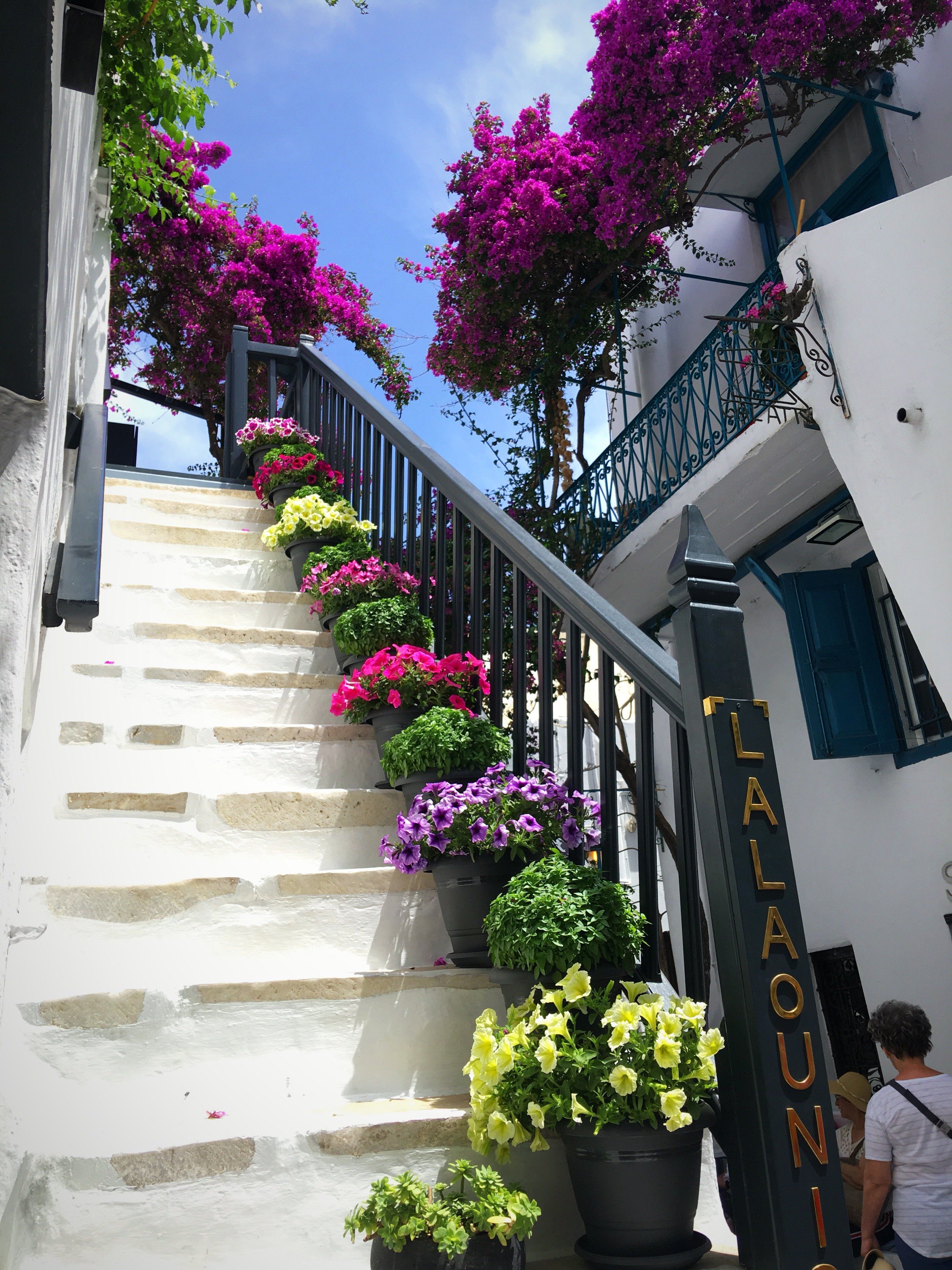 Mykonos felt like another world compared to Athens. It was surrounded by bright blue waters with rows of boats on the shore. It was also a place filled with so many white houses, purple flowers and bright blue doors. Mykonos had some of the best shopping, with rows and rows of little shops filled with keepsakes, clothes and jewelry.