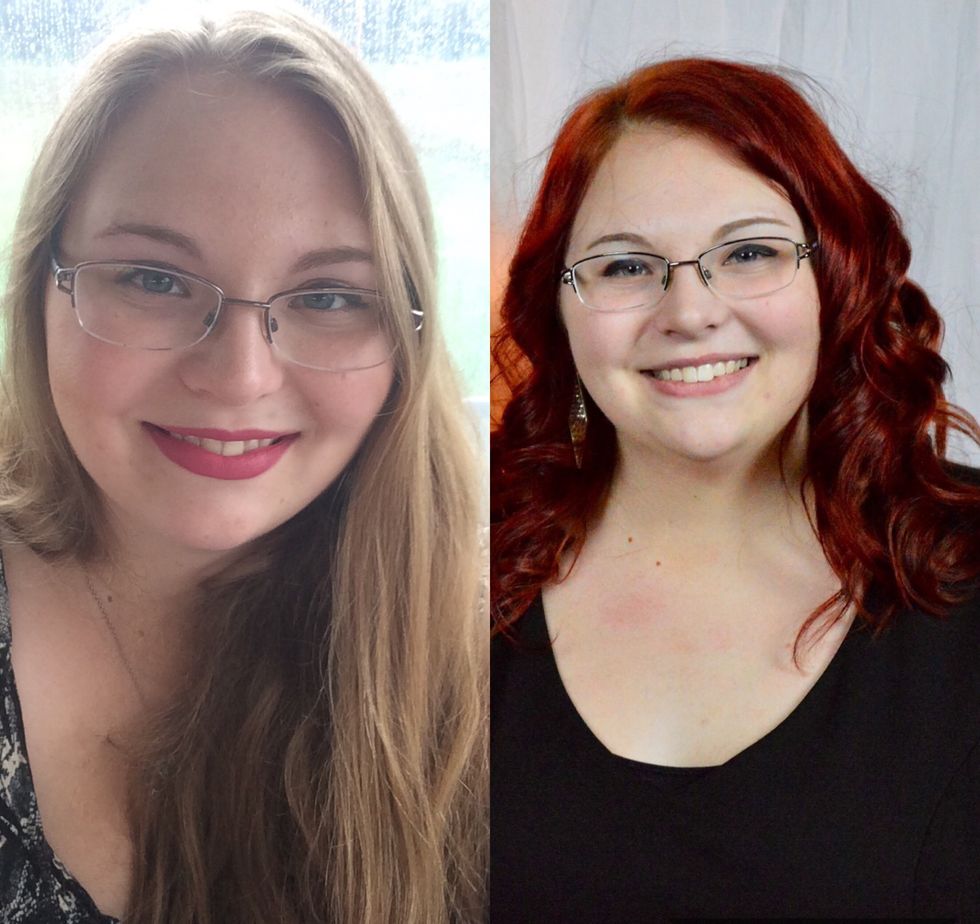Then, last year I decided to cut it shorter, just past my shoulders, and dye it red.