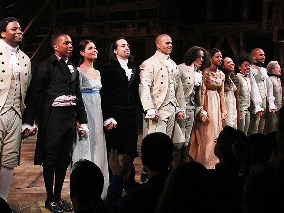 Alexander Hamilton is played by Lin-Manuel Miranda (Rent, Music/Lyrics/Concept for In the Heights, Music/Lyrics for Bring It On! the Musical), who wrote the entirety of Hamilton from a single idea of a mixtape about Alexander Hamilton. But there are also multiple persons-of-color playing the founding fathers and the entire cast consists of extremely diverse and talented people. You can't find a single person in this cast that isn't talented.